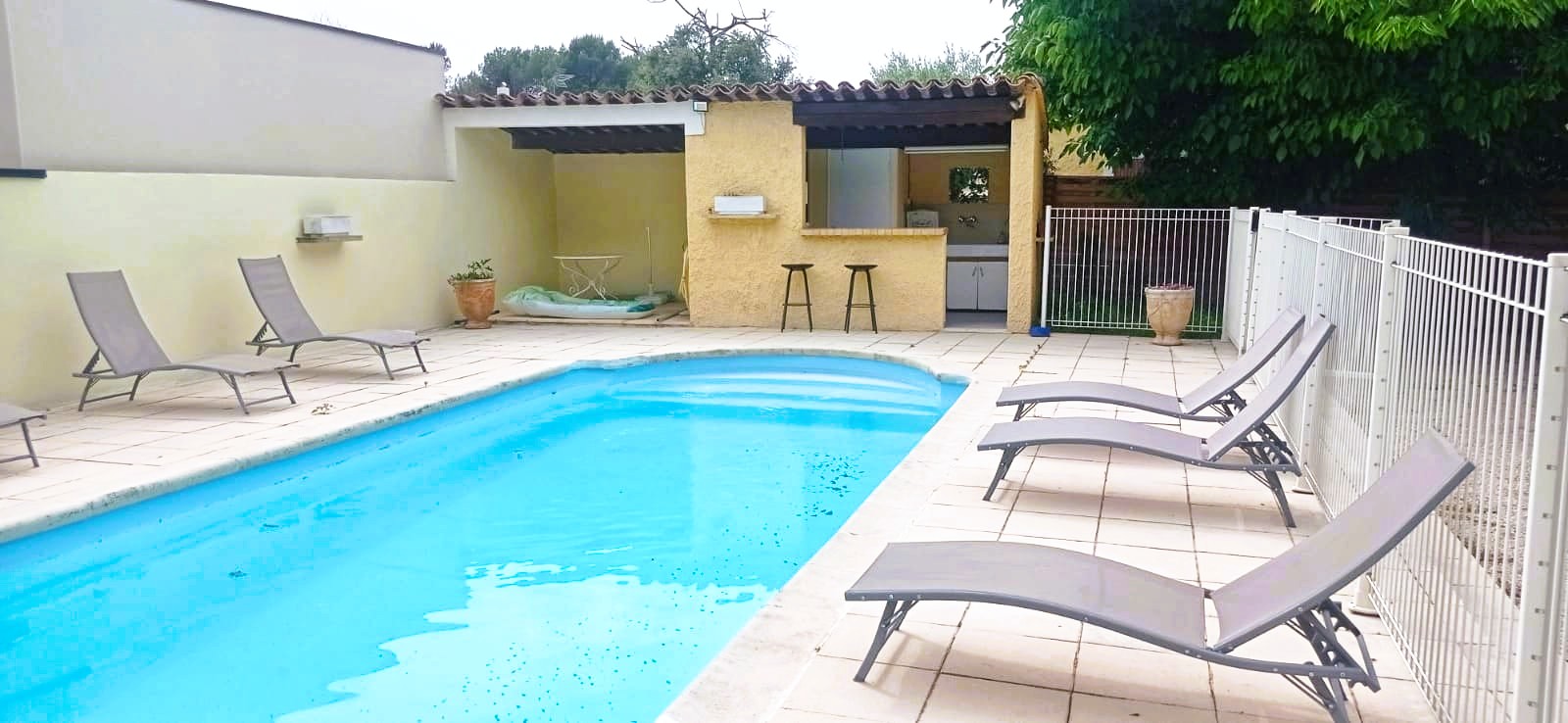 Ontdek deze prachtige gelijkvloerse villa gelegen in een rustige wijk nabij Avignon. Met smaakvolle inrichting en een groot overdekt terras biedt deze villa een comfortabel verblijf voor maximaal vier personen. Ontspan bij het privézwembad in een omheinde tuin met volledige privacy en zonder inkijk.