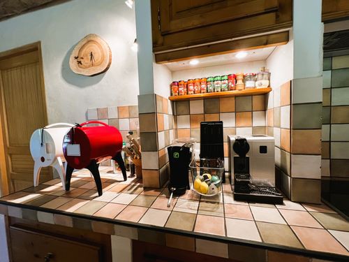 - Open keuken met koelkast, diepvriezer, kookplaat, vaatwasser, oven en microgolf, Nespressomachine, Nespresso T-special (voor thee), waterkoker,...